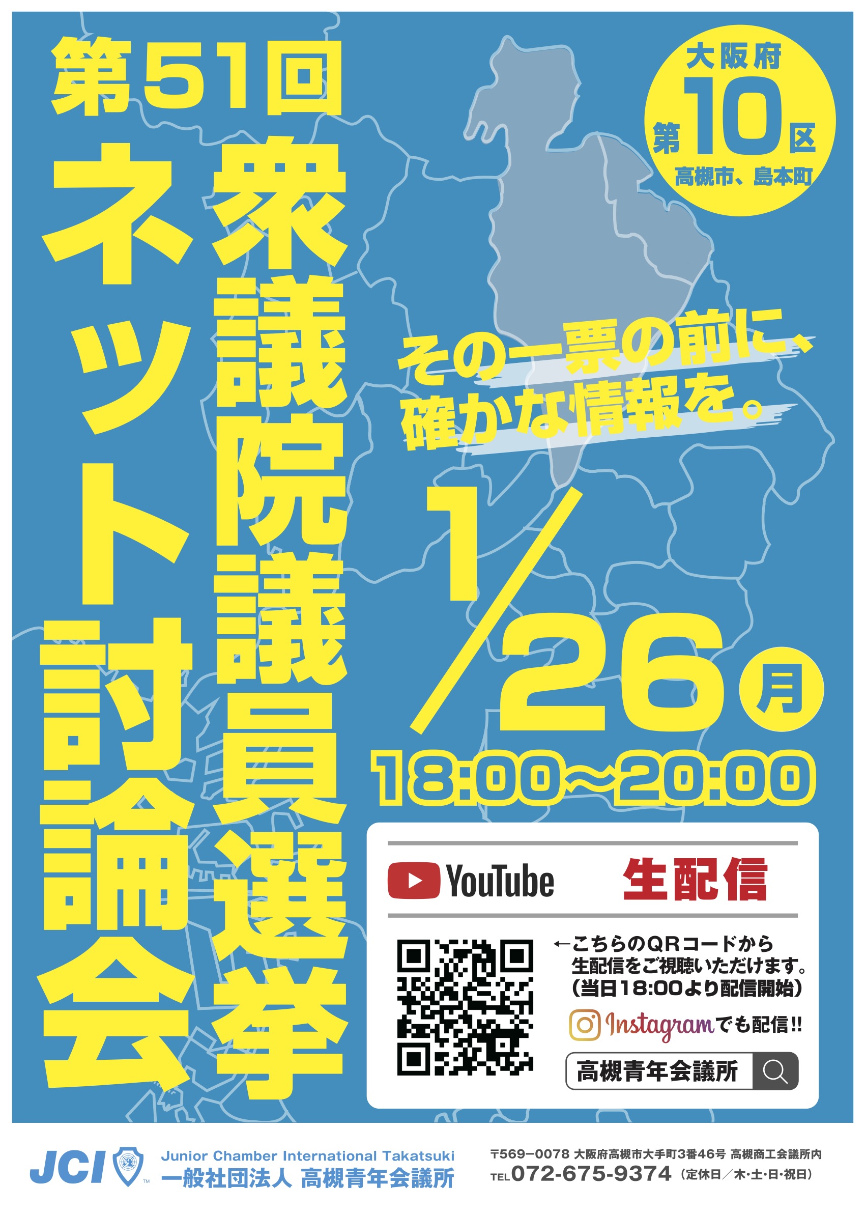 《開催するにあたって一言》 私ども高槻青年会議所では「第50回衆議院議員選挙 大阪10区 ネット討論会」の開催を予定しております。我々青年会議所は政治的に中立…