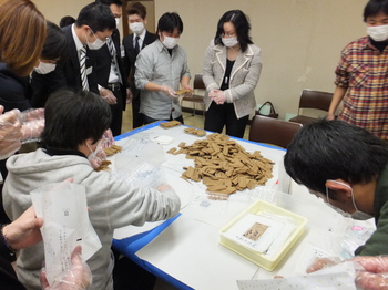 2部では、ワークショップとして各施設から、実際に作業されている方と一緒に仕事の一部を体験していただきました。ワークたんぽぽさんのおからかりんとうの袋詰め作業です。