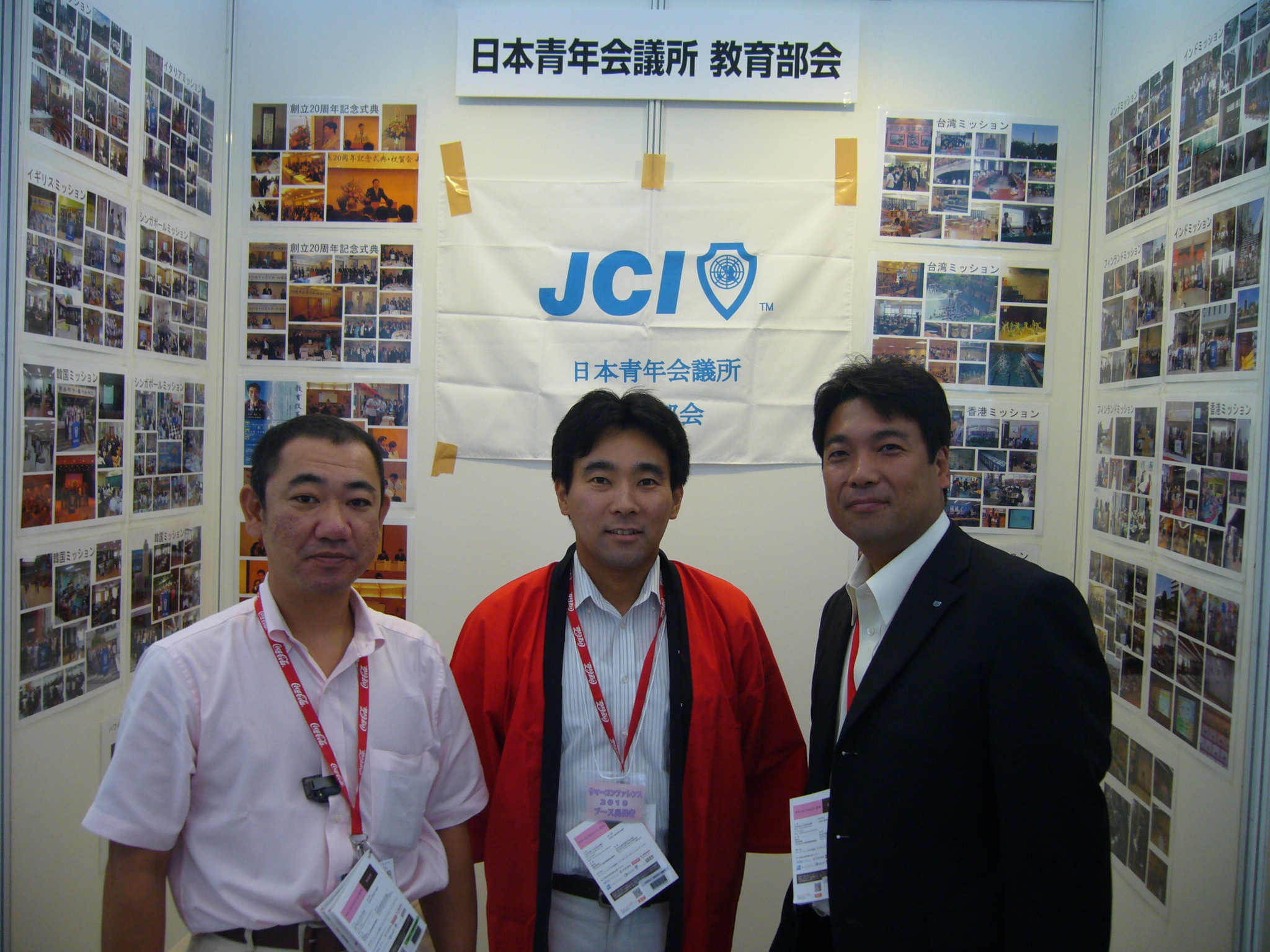 セミナーに参加しようと会場の外に出ると、高槻JCメンバーの森田総務委員長が「業種別部会」の「教育部会」のブースにおられました。活動の幅が広い森田委員長でした。何故か商売繁盛の法被を着られて頑張っておられました。